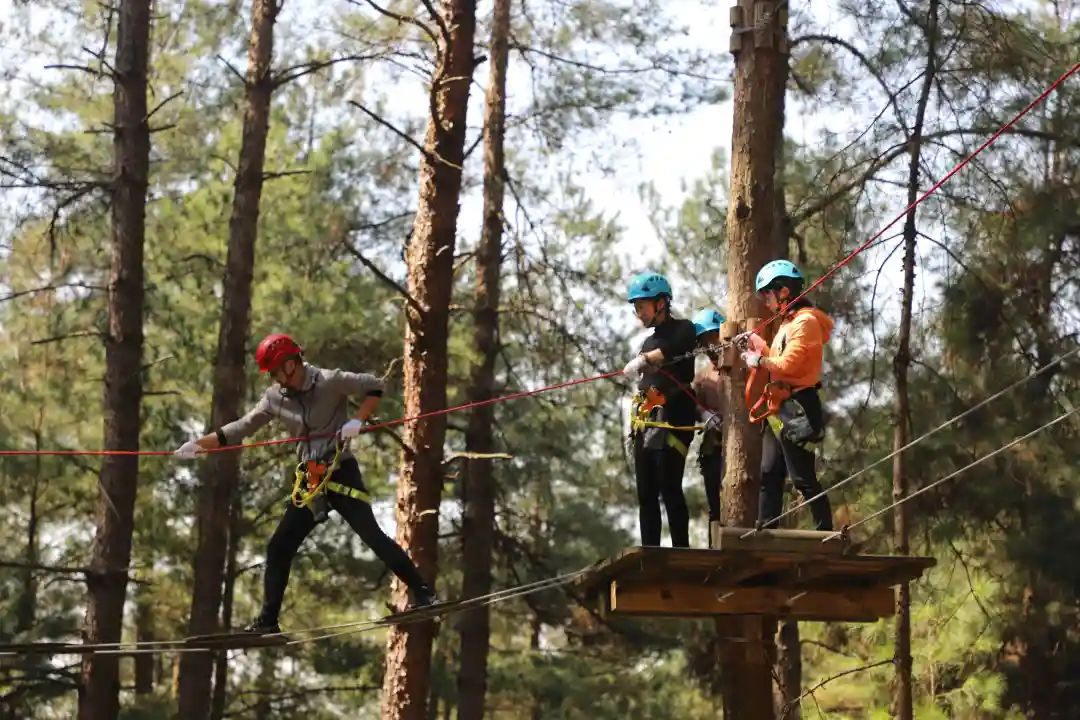 從公司出發(fā)到達(dá)龍里水鄉(xiāng)飛躍叢林活動(dòng)現(xiàn)場(chǎng),在教練的帶領(lǐng)下,大家體驗(yàn)了雜技踢、滑冰橋、圓碟步、飛毯、松弛索等項(xiàng)目。