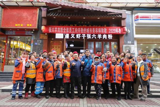 每年寒冬遵義蝦子張六羊肉粉館都會邀請環(huán)衛(wèi)工人們到店免費(fèi)吃粉,并贈送暖心禮物,今年也不例外。12月18日,遵義蝦子張六羊肉粉館在寒冬中為守護(hù)城市環(huán)境、堅守崗位的環(huán)衛(wèi)工人們送上了冬日里的溫暖。