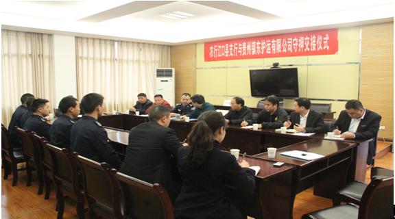 經(jīng)過(guò)半年的業(yè)務(wù)對(duì)接和洽談,銅仁本部于11月16日至20日正式接手德江、石阡、印江、江口、松桃五縣農(nóng)業(yè)銀行守押業(yè)務(wù)。銅仁市公安局保安大隊(duì)大隊(duì)長(zhǎng)王世軍、銅仁市農(nóng)行副行長(zhǎng)任達(dá)輝、銅仁市農(nóng)行保衛(wèi)部經(jīng)理?xiàng)蠲汀€~仁本部總經(jīng)理陳葉、副總經(jīng)理劉興華、劉樹(shù)等出席了五縣守押業(yè)務(wù)交接儀式。