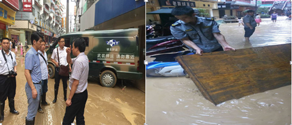 銅仁本部負(fù)責(zé)人陳葉接到電話報告后,第一時間率領(lǐng)應(yīng)急人員趕赴一線,與市公安局治安支隊吳支隊長、市工行吳行長一同到現(xiàn)場指揮抗洪救災(zāi)工作。