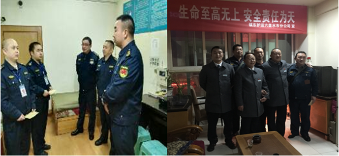 根據(jù)王訓(xùn)江董事長的指示,黔東南州分公司總經(jīng)理黃水波、六盤水市分公司總經(jīng)理夏誠豇,于元旦前夕分別帶領(lǐng)班子成員看望和慰問了在崗守護(hù)隊(duì)員。
