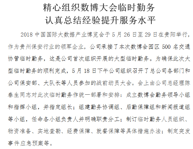 精心組織數(shù)博大會(huì)臨時(shí)勤務(wù) 認(rèn)真總結(jié)經(jīng)驗(yàn)提升服務(wù)水平