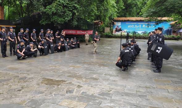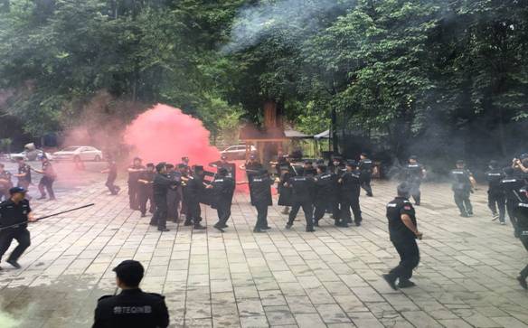 本次演練分為理論培訓、隊形訓練和反恐應急處突演練,以求達到“能發(fā)現(xiàn)、會舉報;能避險,會自救;能識別,會應對”的反恐防暴能力,全體隊員不怕苦、不怕累,在小雨中堅持演練。貴州陟翔保安有限公司駐車輛段、客運段保安隊副隊長姚建同志在訓練中眼睛受傷不下火線,用清水清洗后立即投入訓練,得到客戶單位領導的一致認可。