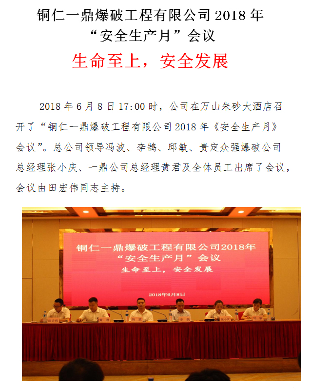 > 銅仁一鼎爆破工程有限公司2018年 “安全生產月”會議 生命至上,安全發(fā)展