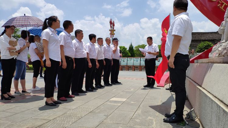 在位于甕安縣的猴場會議紀念館,全體黨員、預(yù)備黨員肅立在革命烈士雕像前,舉起右手,重溫了加入中國共產(chǎn)黨時的宣誓詞。短短幾十字的宣誓詞,無形之中在警醒、提示和規(guī)范每一位黨員同志的先鋒模范作用。