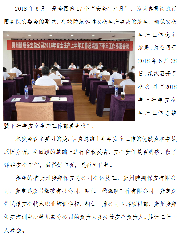 > 2018年上半年安全生產(chǎn)工作總結(jié)暨 下半年安全生產(chǎn)工作部署會(huì)議